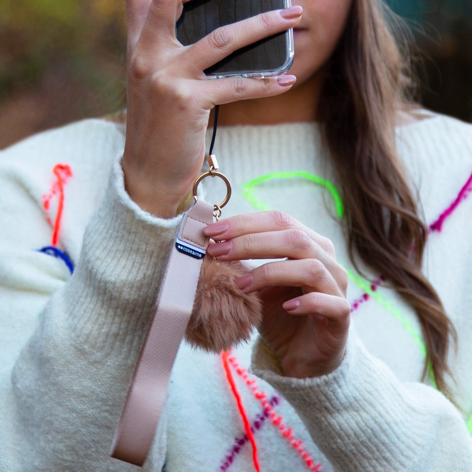 Esprimi il tuo stile e la tua personalità. Il laccio da polso è piacevole al tatto ed il morbido pompon con catenina dorata lo rende un accessorio di tendenza per ogni occasione. Personalizza il tuo smartphone con stile e distinguiti.