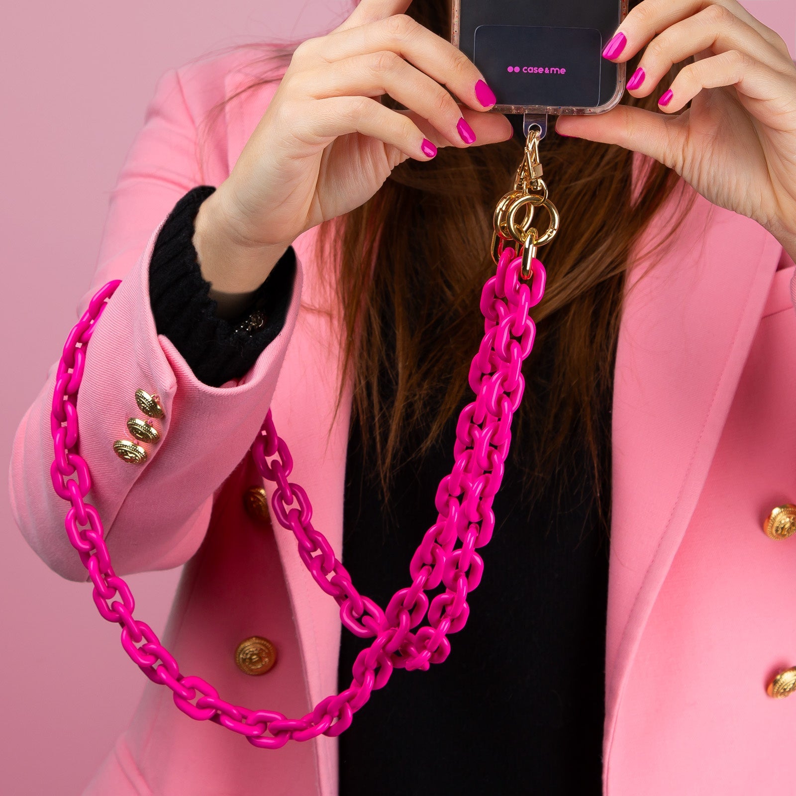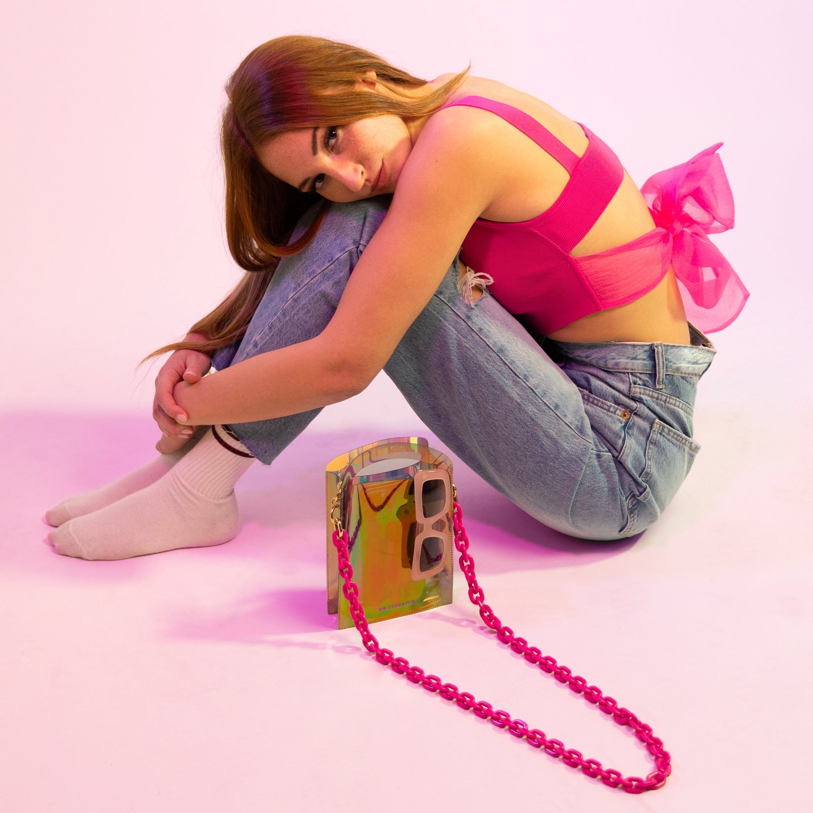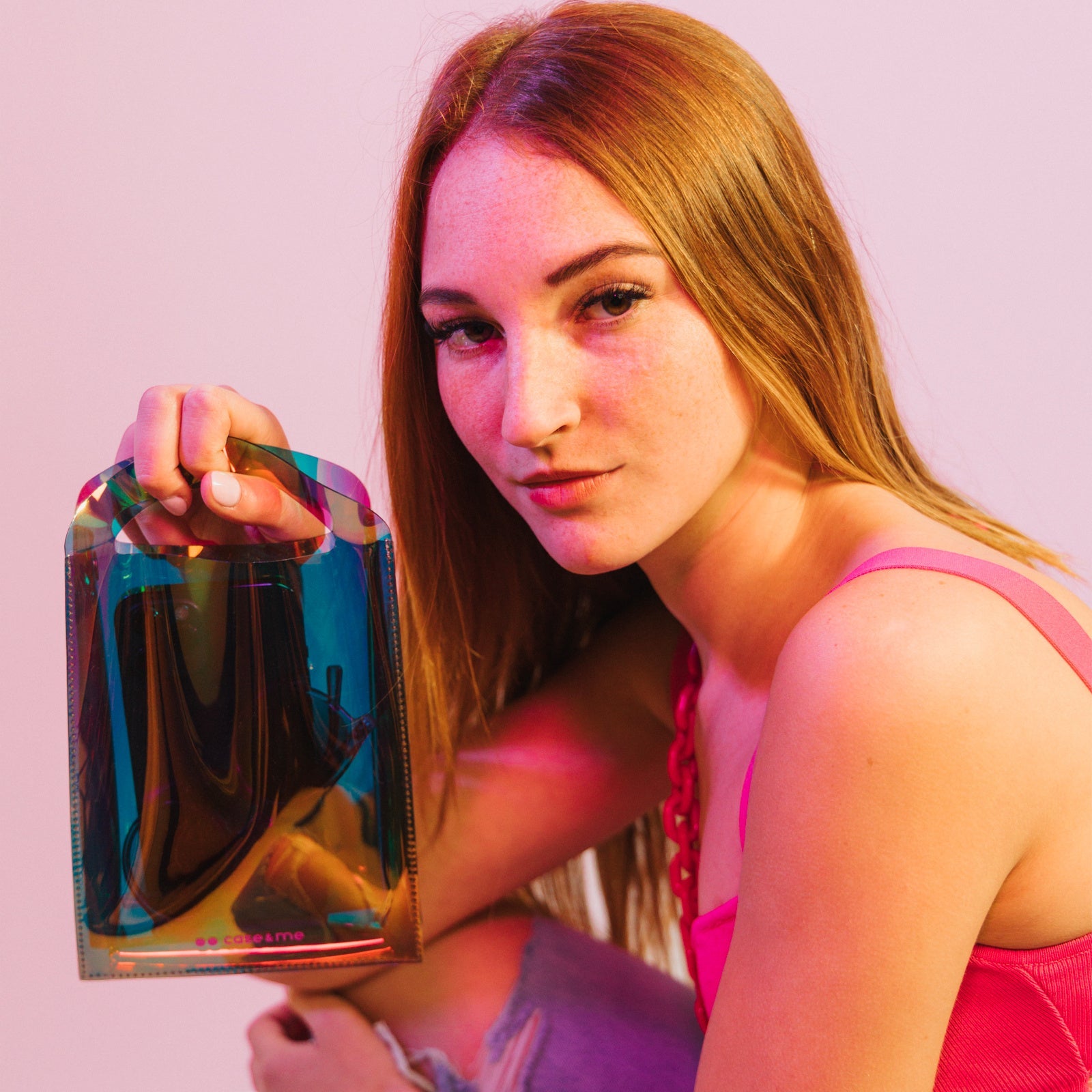 Questa borsetta semitrasparente è molto versatile: portala a tracolla, a mano oppure indossa la catena come laccio da collo per smartphone