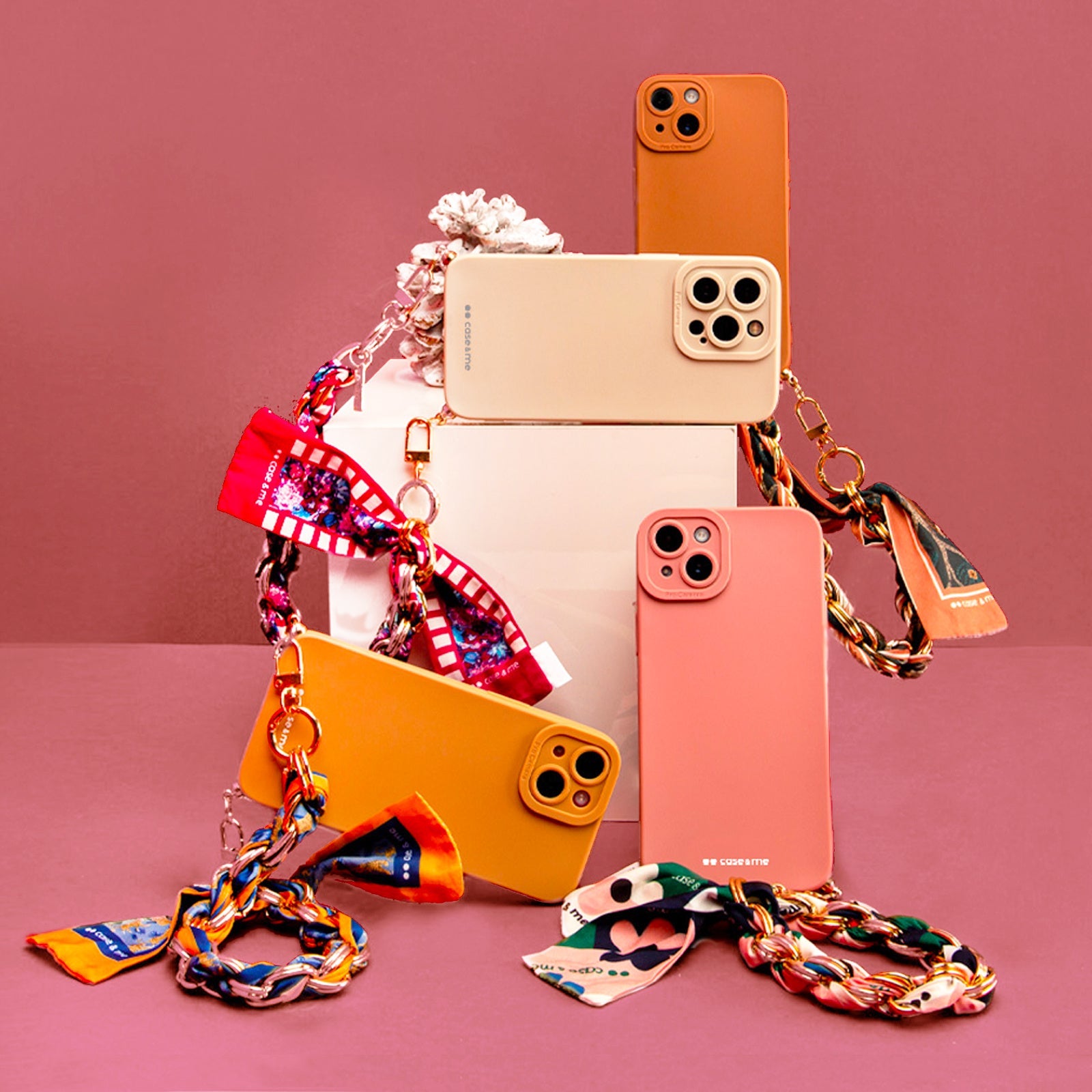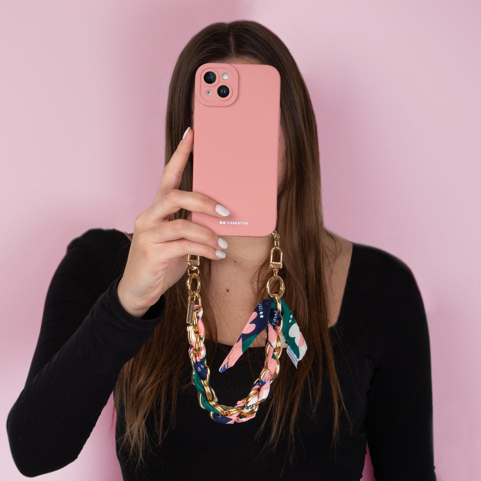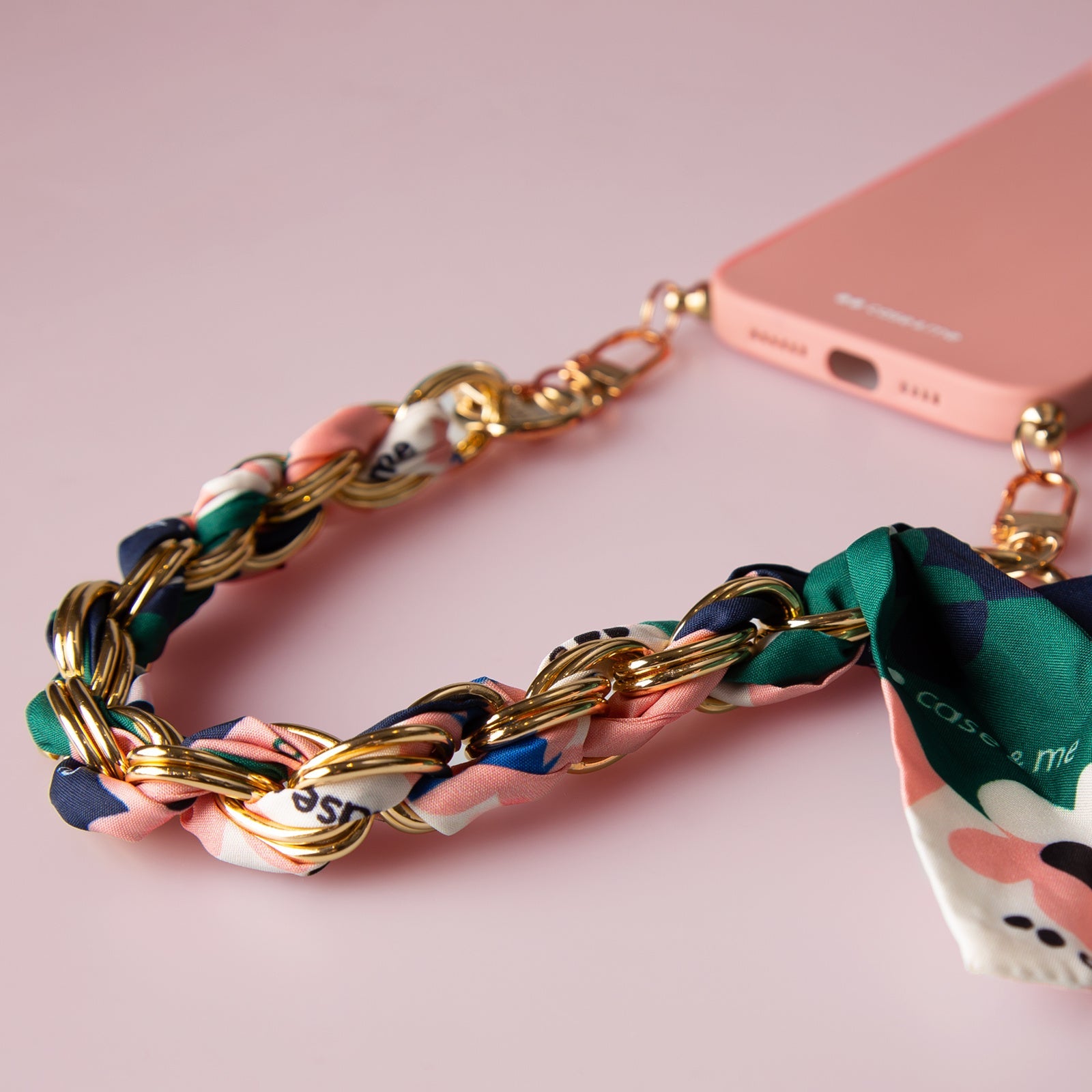 Cover per iPhone 14 Plus con catenella da polso e foulard