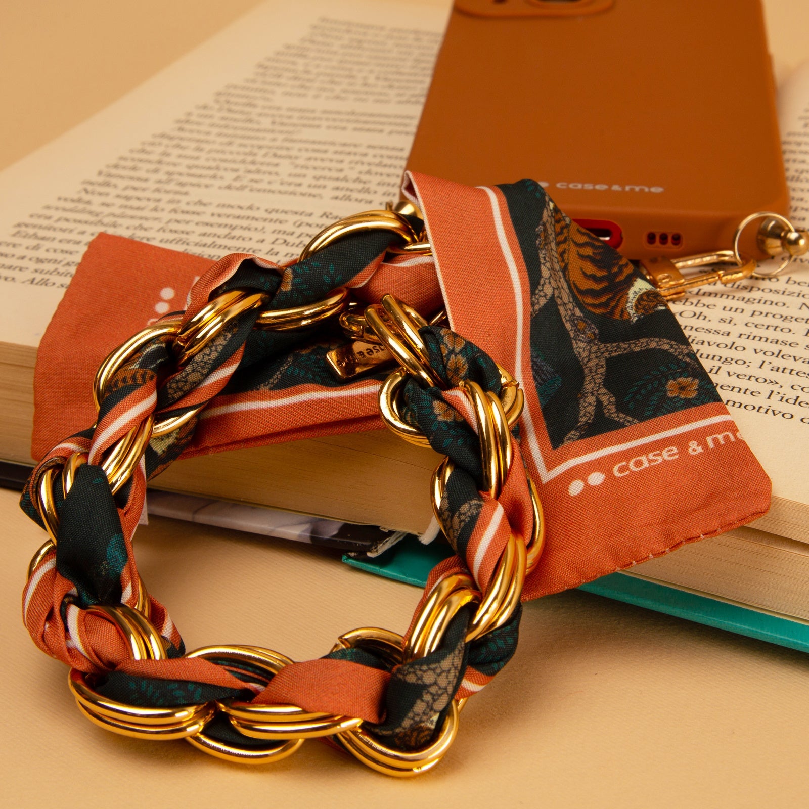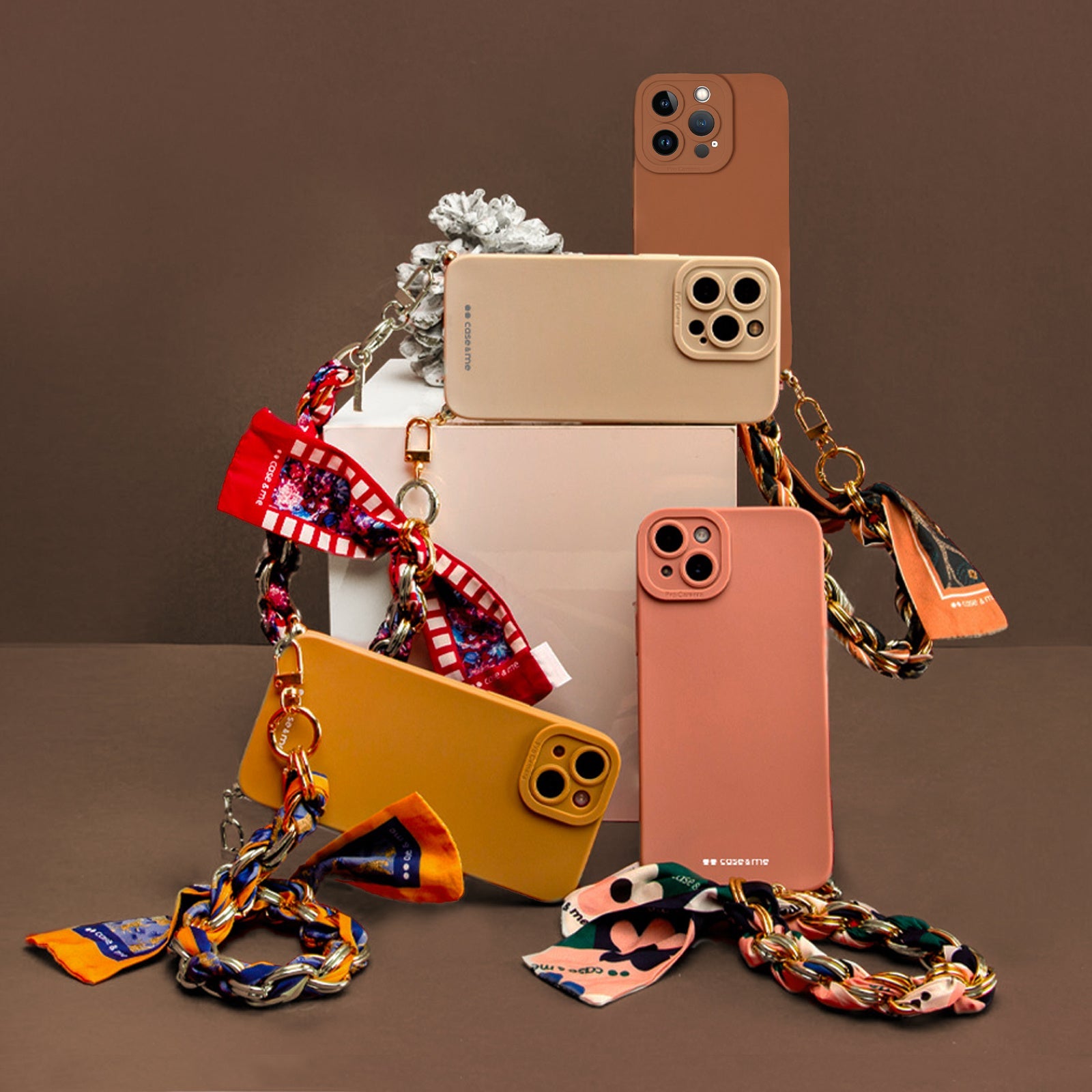 Cover per iPhone 14 Pro Max con catenella da polso e foulard