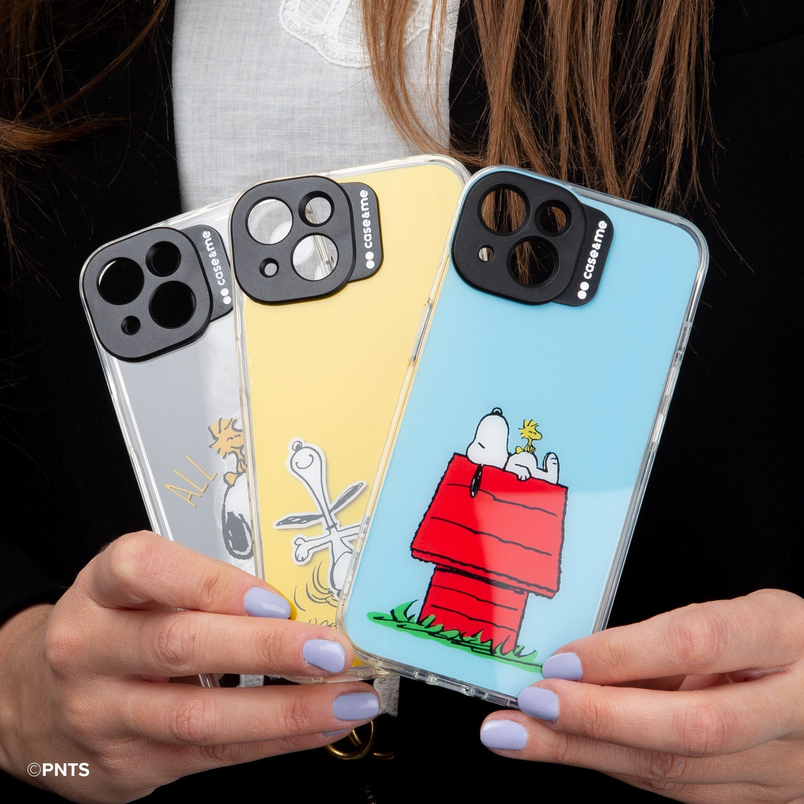 La Wonder Case Peanuts™ è la custodia rigida ideale per tutti coloro che vogliono proteggere non solo la scocca ma anche le lenti della fotocamera del proprio iPhone 13.