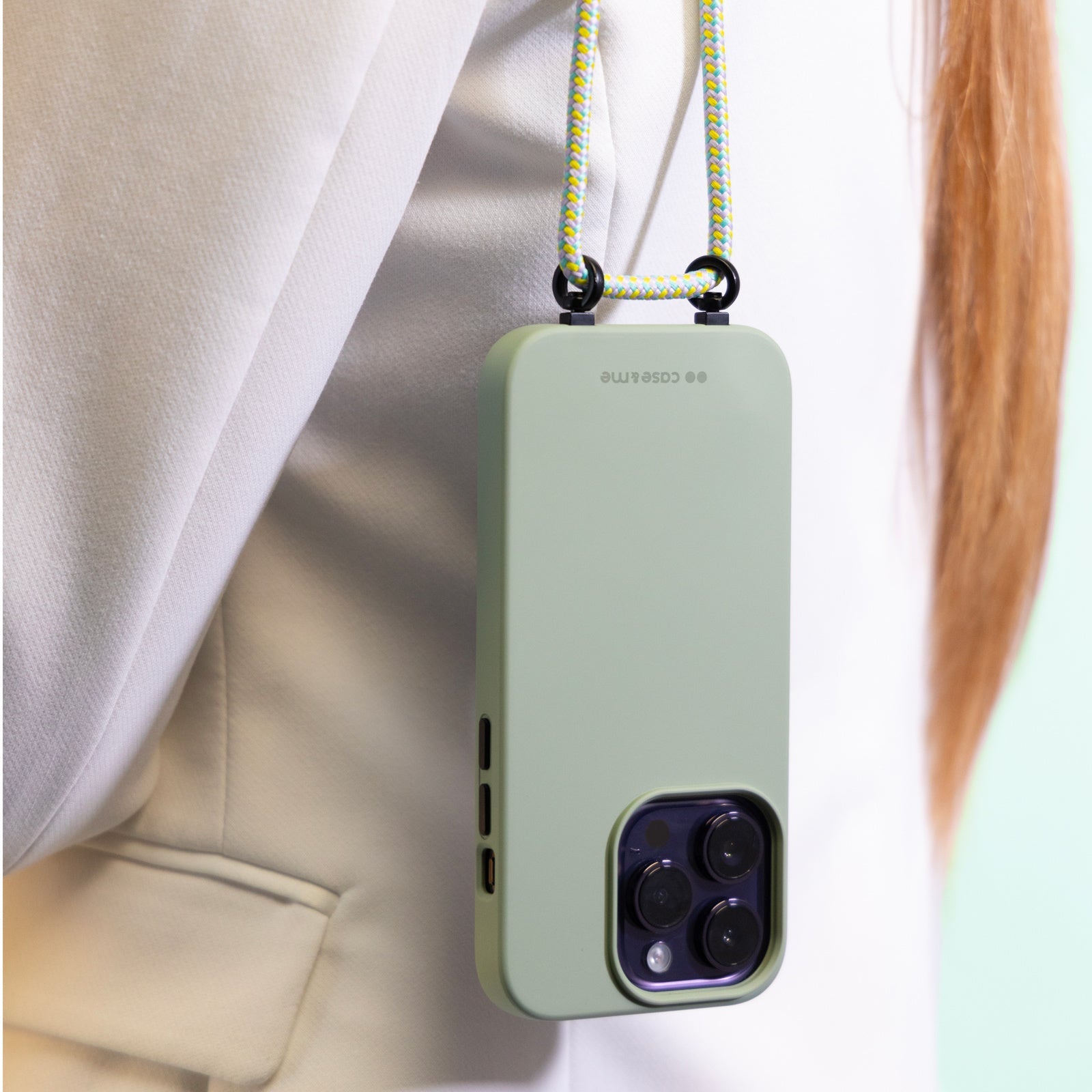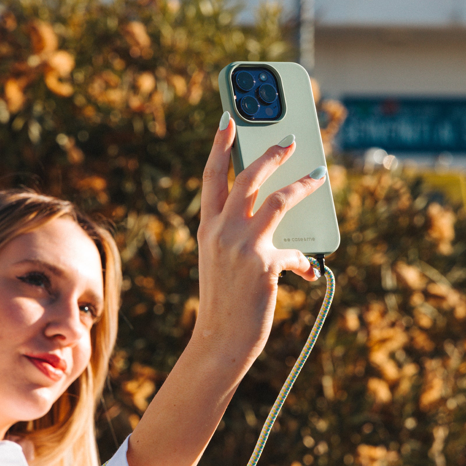 La cover Bond per iPhone 14 Pro ti offre la duplice possibilità di indossare il telefono sia come una custodia a tracolla sia come collana. Scegli la lunghezza che più si adatta alle tue esigenze regolando il laccetto attraverso le due estremità fino ad un massimo di circa 60 centimetri.
