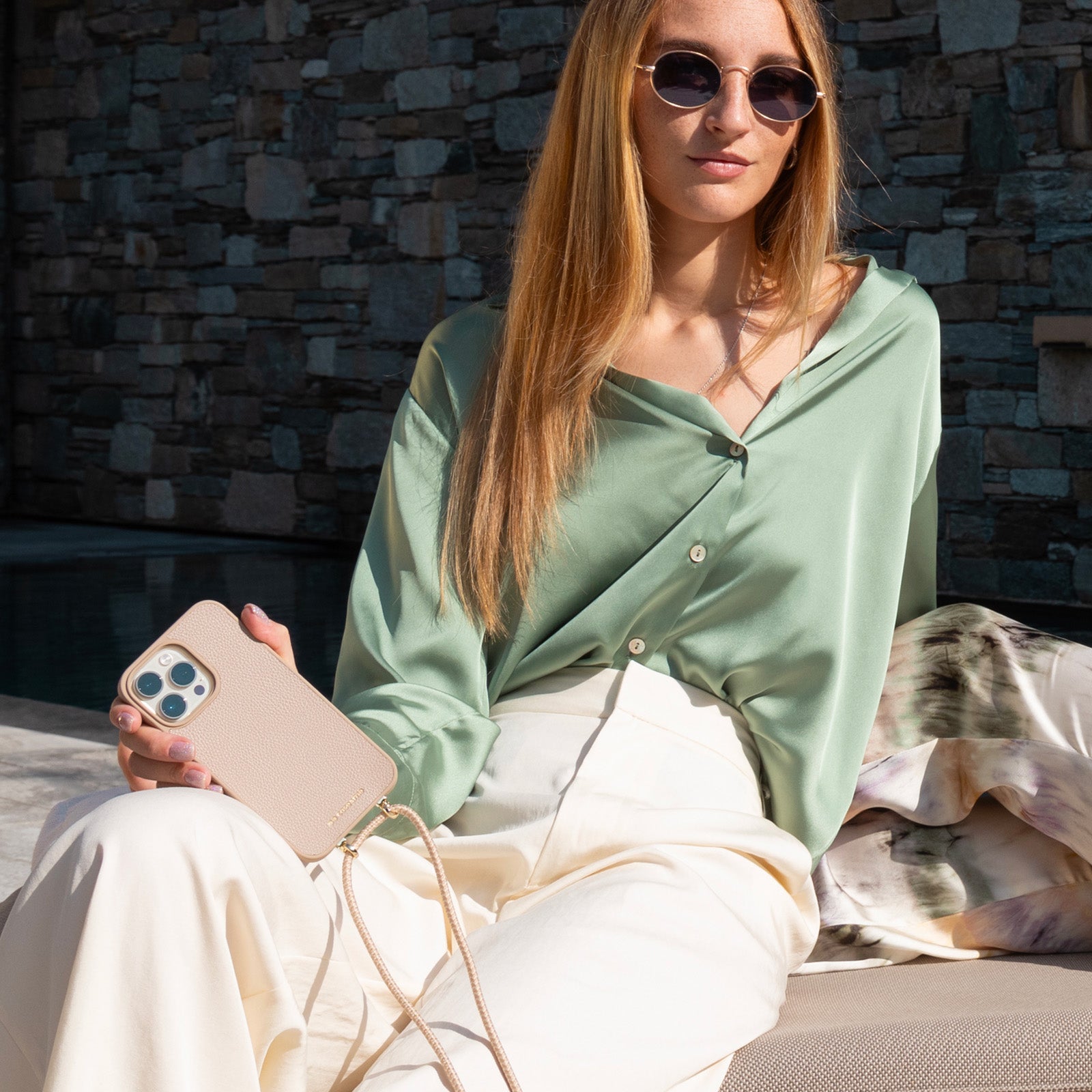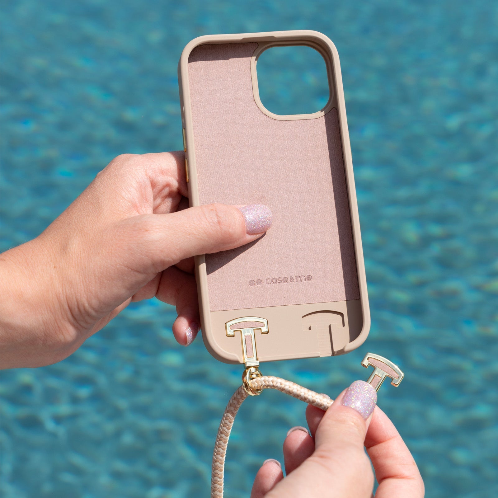 Il laccio di collo regolabile si integra nella cover grazie ai pratici agganci a forma di ancora. Inseriscili negli appositi alloggiamenti presenti all'interno della cover per trasformarla in una custodia a laccetto. In questo modo, avrai il tuo telefono sempre a portata di mano per scattare foto, controllare le notifiche o inviare messaggi. Il laccio misura 60 centimetri e ti permette di indossare lo smartphone a tracolla o come una collana. Regolalo come preferisci e scegli tu a che lunghezza portarlo. I cuscinetti posti sugli attacchi, inoltre, evitano che lo smartphone si rovini: usalo in serenità anche a lungo. Rimuovilo in ogni momento per usare la custodia come una semplice protezione.