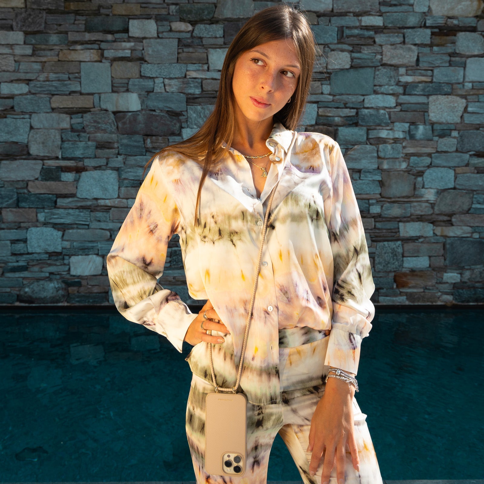 Questa cover si contraddistingue per i dettagli dorati che caratterizzano il laccio da collo e gli spazi per i tasti laterali. La finitura soft touch e gli interni colorati, inoltre, la fanno figurare come una cover elegante. Abbinala ai tuoi outfit migliori e personalizza il tuo smartphone in maniera sorprendente.